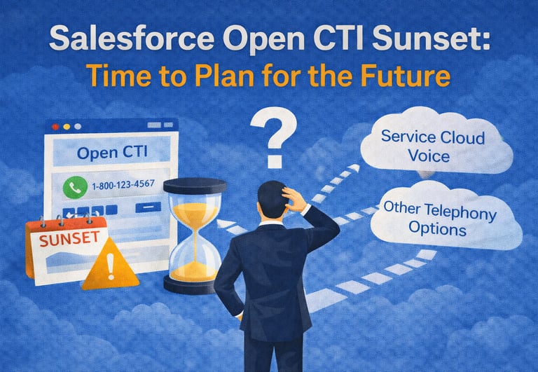 Salesforce has officially put a clock on Open CTI. For years, Open CTI has been the backbone of how many organizations integrated their phone systems with Salesforce. CTI adapters, click-to-dial, screen pops, call logging into Tasks—this pattern has been the standard.